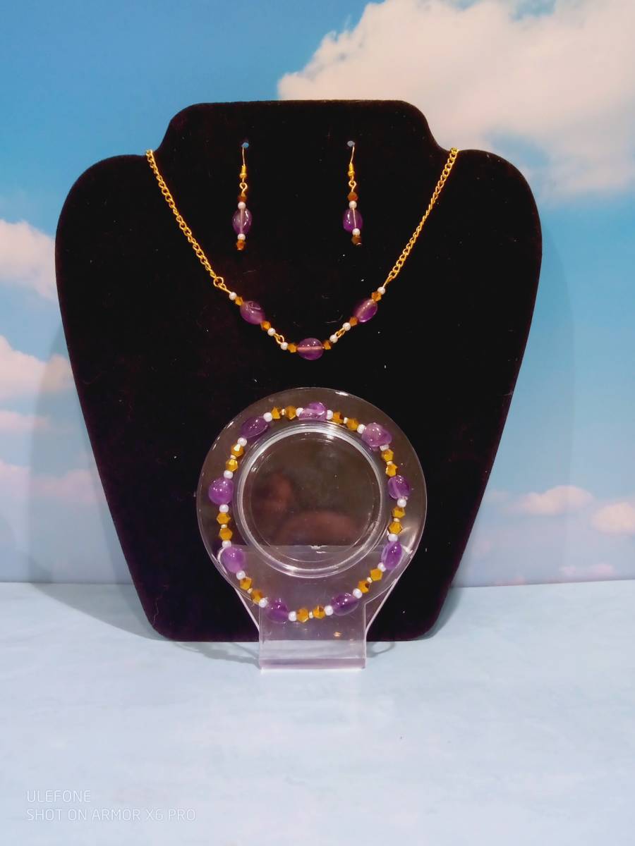 Recharger votre parure à la lumière de la pleine lune chaque mois (attention à ne pas la mettre au soleil de peur de lui faire perdre sa belle couleur violette)