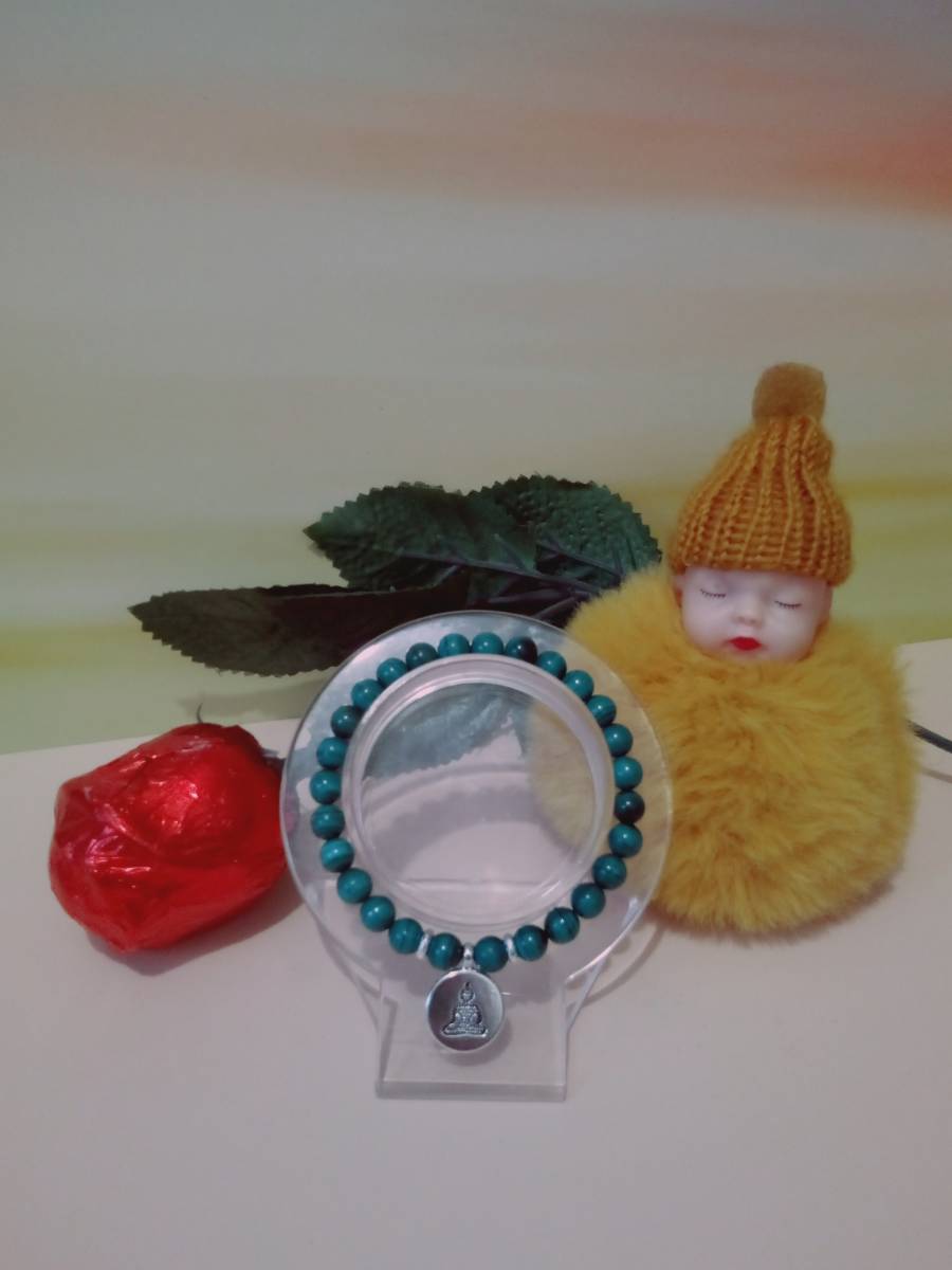Bracelet en 6 mm composé de 27 perles en malachite naturelle, de 2 séparateurs en alliage métallique, d'un pendentif en acier inoxydable et d'un fil élastique de 0,8mm