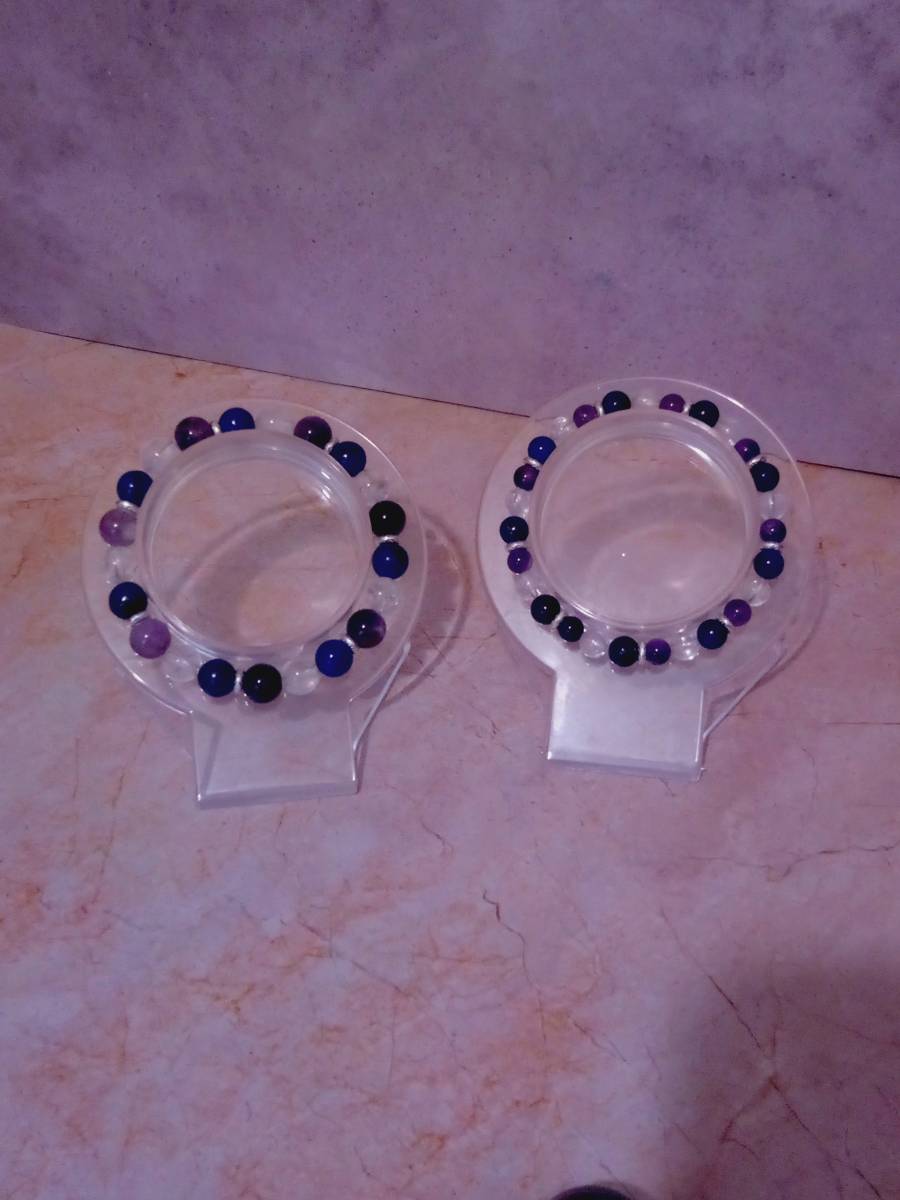 Perles de 8mm : bracelet composé de 7 perles de lapis-lazuli naturel, de 7 perles de cristal de roche naturel, de 7 perles d'améthyste naturelle, de 7 séparateurs plats ronds en alliage métallique et d'un fil élastique de 0,8mm