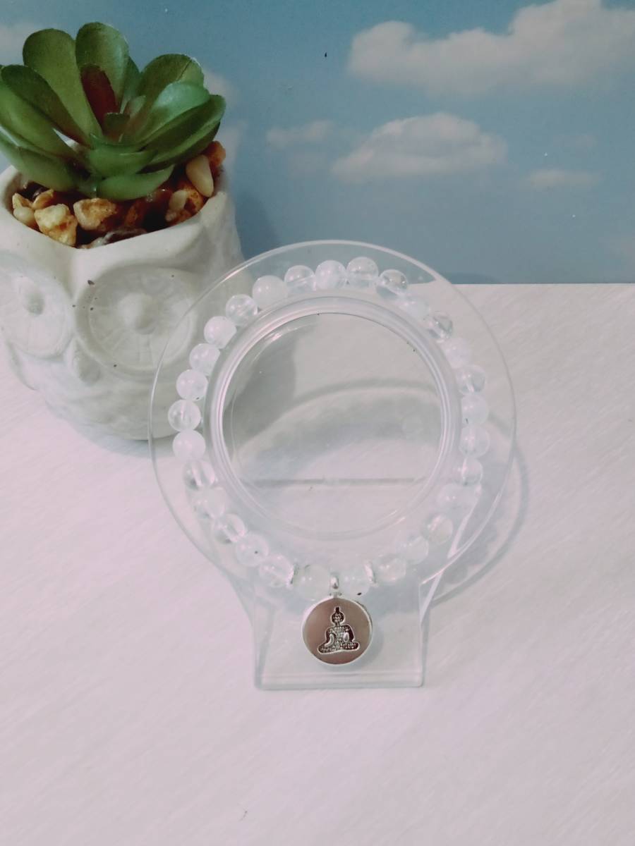 Perles de pierre de lune naturelle, perles de cristal de roche naturel, séparateur ronds plats en alliage métallique, pendentif en acier inoxydable, fil élastique de 0,8 mm