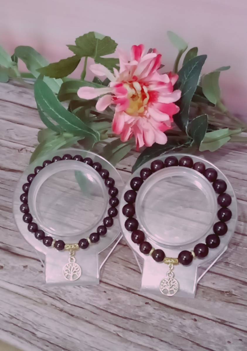 Perles d'oeil de grenat naturel, fil élastique, oeilleton en alliage métalique