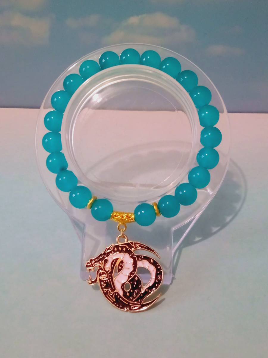 Composé de 22 perles de Jade de Birmanie synthétique, 2 séparateurs ronds plats en alliage métallique, d'1 séparateur avec pendentif en alliage métallique et d'un fil élastique de 0,8mm