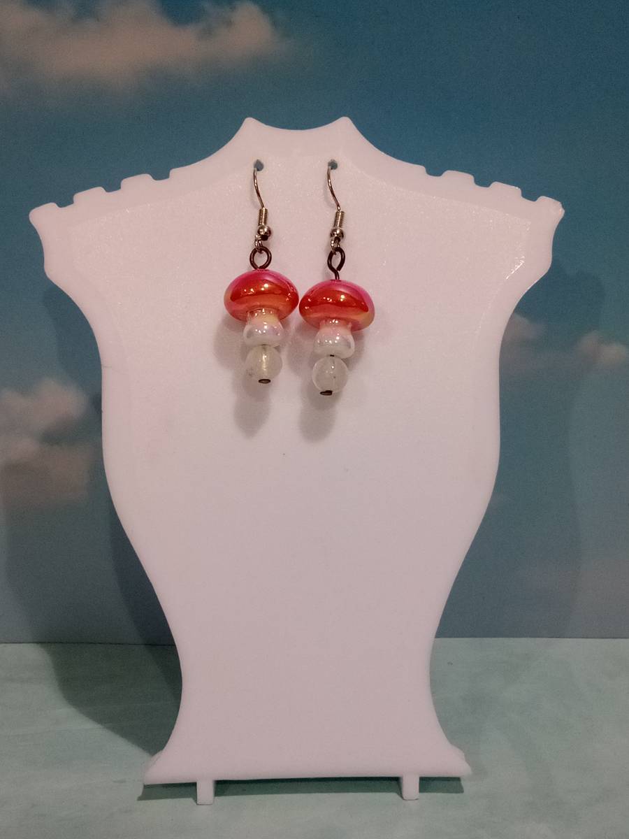 Perles en pierre de Lune, champignon en plastique nacré, tiges et crochets en acier inoxydable