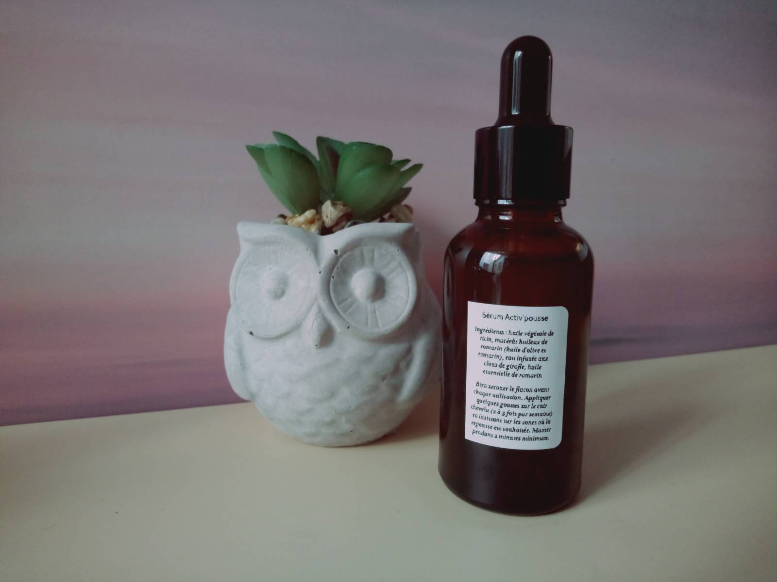 Macérât huileux de romarin, huile de ricin, huile essentielle de romarin, eau infusée aux clous de girofle